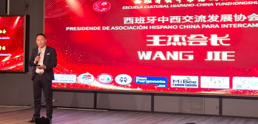 Wang Jie, presidente de la Asociación de Desarrollo e Intercambios China-España destacó la profundización de las relaciones bilaterales y el papel de la comunidad china en España como puente irreemplazable, reconociendo el esfuerzo de la Asociación organizadora para promover la educación bilingüe y la difusión de la cultura china.