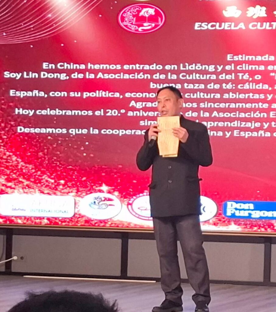 El evento, meticulosamente preparado e impulsado por el esfuerzo conjunto de nuestros colegas, es sin duda un homenaje perfecto a esta profunda amistad. En este momento tan especial, nos reunimos aquí para rememorar el hermoso pasado y mirar hacia el futuro con personas de la comunidad china, de la comunidad cultural y educativa y de varias instituciones amistosas españolas».