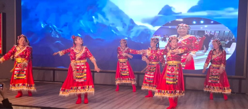 El evento fue presentado por la presidenta de la Asociación Esther Lingyun y se inició con la danza «El Gran Escenario de China» interpretado por un grupo de mujeres de la comunidad china, con trajes tradicionales, en un ambiente cálido y solemne. Durante el desarrollo del acto también actuaron otros otros grupos de danza tibetana y de Tai Chi.