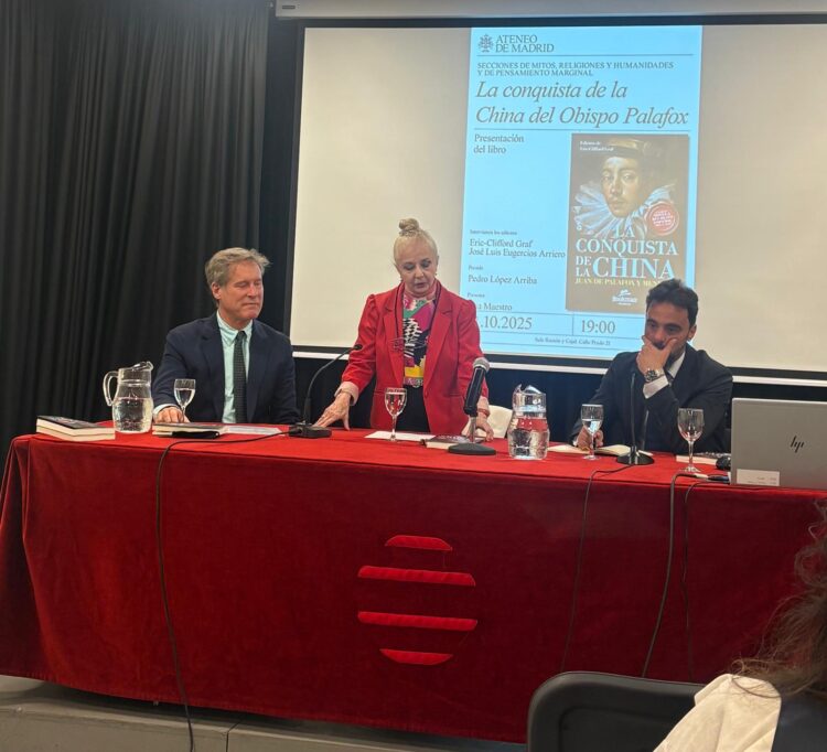 El Ateneo de Madrid, centro histórico del pensamiento liberal español, fue el escenario de la reciente presentación de la nueva edición crítica de La Conquista de la China, del obispo y humanista novohispano Juan de Palafox y Mendoza. La edición, preparada por Eric Clifford Graf y José Luis Eugercios Arriero, ha sido publicada por la editorial Bookman y constituye una recuperación de una obra singular del siglo XVII, considerada por los editores como la primera gran novela escrita sobre China.