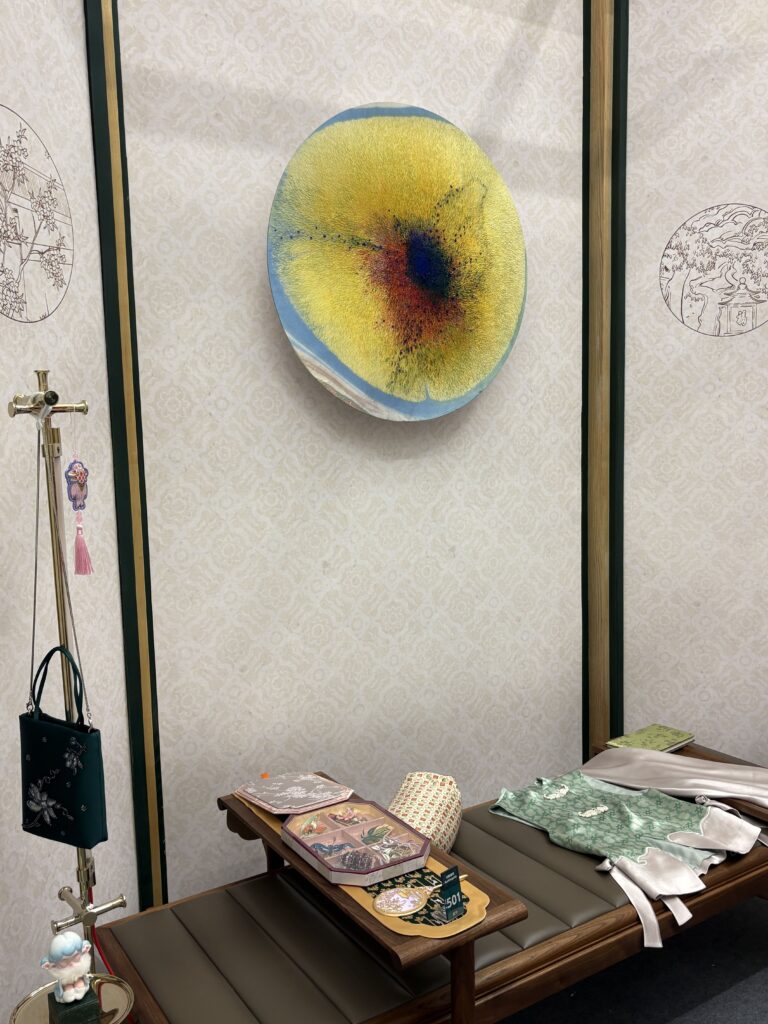 Se entra por el patio frontal del estudio, que en esta exposición recibe el nombre de ‘Esencia florida’. Un lugar lleno de flores y formado por la conjunción de una roca Taihu tejida en bambú, donde el objetivo es crear un espacio encantador donde se mezcle cultura y naturaleza, y donde el paisaje ayuda a relajarnos y lograr un momento poético y cultural.