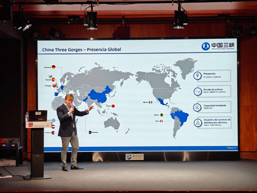 Durante su presentación, Herrero expuso la evolución de la compañía en España y el papel creciente de las energías renovables. Para ello, detalló que China Three Gorges (Europe) cuenta con diferentes parques solares y eólicos en hasta siete comunidades autónomas. En su conjunto, señaló, suman 1,9 GW de capacidad instalada (1.4 GW solar y 0.6 GW eólico), lo que está contribuyendo al avance de la transición energética en España.