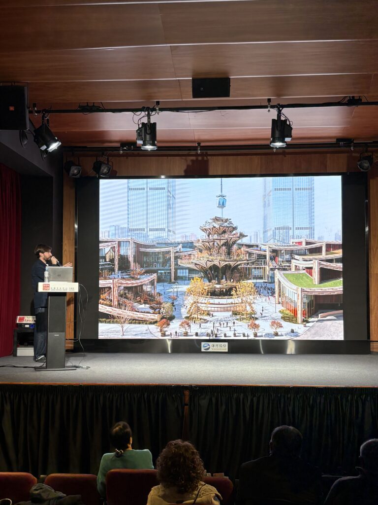 Pero volviendo a los orígenes, a la planificación del proyecto que comenzó en 2020, vieron que el Templo del Cielo y la torre de televisión de la ciudad serían los dos emblemas que conectarían con el resto de la ciudad. “Son los dos hitos clave para el proyecto”, relató. Y tras buscar que le podía dar identidad al proyecto, entendieron que la cerámica podría jugar un papel esencial. Y vieron que la calidad de los acabados no iba a ser tan interesante como revestir una columna con cerámica. Dicho y hecho. Recorrieron talleres, grandes y pequeños, hasta que encontraron la forma.