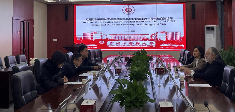El pasado día 18 de noviembre, una delegación de la Fundación Europea de Medicina Tradicional, Complementaria e Integrativa (FEMTCI) mantuvo un encuentro institucional con los máximos representantes de la Universidad de MTC de Guizhou en las instalaciones de la propia universidad, en la ciudad de Guiyang. La reunión se desarrolló en un clima de colaboración y entendimiento mutuo, con el objetivo de profundizar en los lazos académicos y culturales entre ambas instituciones y que dicha universidad se sume al proyecto que la FEMTCI está impulsando con más de 20 universidades de MTC de China, en el ámbito de la Medicina Tradicional China (MTC).