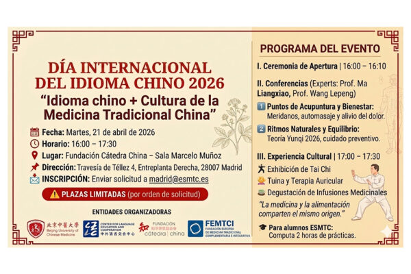 Desde la Sección de Medicina Tradicional China de la Fundación queremos invitaros al encuentro que tendremos el día 21 de abril en nuestra sede, con motivo del Día Internacional del Idioma Chino….